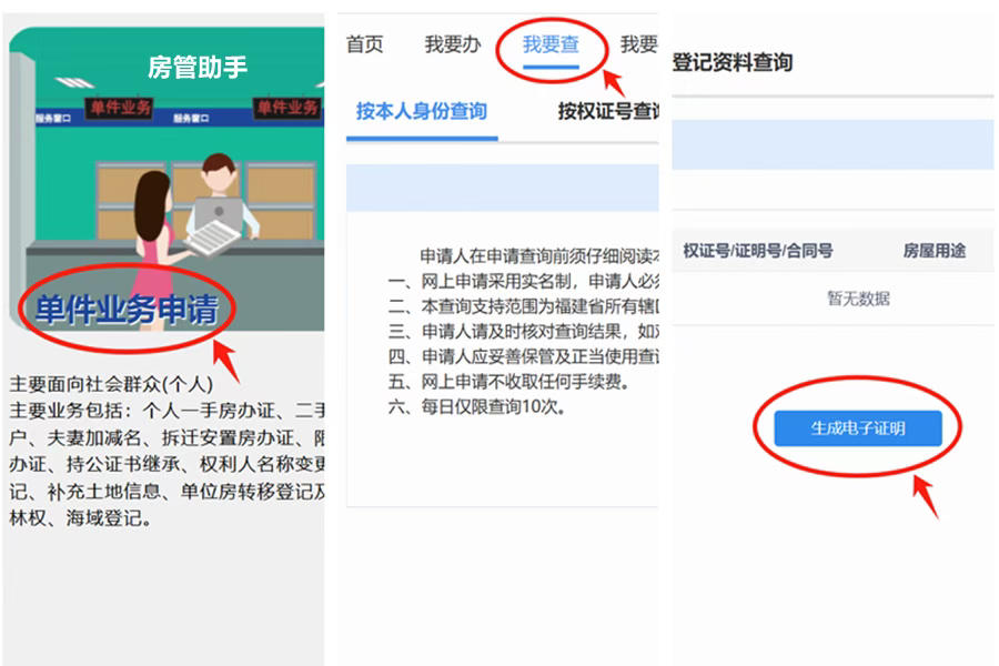 温馨提示:本文所示厦门无房证明网上办理步骤仅作参考,具体以线上页面为准。闽政通不动产权证查询平台可能存在升级、改版等情况,房管助手会及时跟进并通过公众号更新发布。