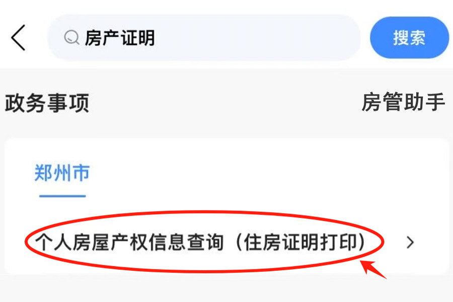 1、在房管助手公众号回复“郑州不动产查询”,进入郑州不动产平台。在郑好办首页搜索“住房证明”,点击“住房证明打印”;